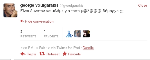 Βουλγαράκης στους προσωπικούς του λογαριασμούς σε Facebook, και twitter,