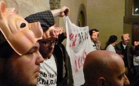 Ομάδα φοιτητών, που φορούσε μάσκες χοίρων, αποδοκίμασε τον υπουργό