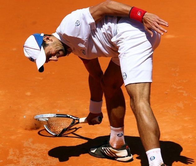 Ο Νόβακ Τζόκοβιτς δεν μπόρεσε να συγκρατήσει τα νεύρα του για την κακή απόδοσή του στο πρώτο σετ στον αγώνα του με τον Χουάν Μόνακο για τη φάση των «16» του τουρνουά της Ρώμης και ξέσπασε διαλύοντας την ρακέτα του.